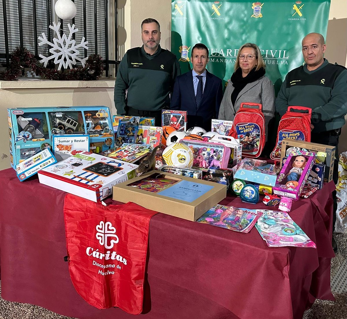 La Guardia Civil ha celebrado una Zambomba Benéfica en la Comandancia de Huelva que comenzó con una fiesta infantil de disfraces navideños y en la que los asistentes colaboraron con la aportación de juguetes que han sido donados a Caritas para familias en riesgo de exclusión.