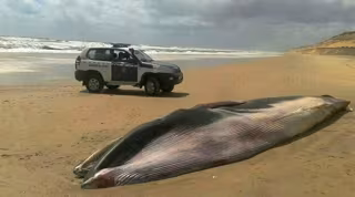 Sobre las 12,40 horas de este miércoles, un agente del Servicio de Protección de la Naturaleza (Seprona) de la Guardia Civil ha alertado al 112 del hallazgo del cadáver de una ballena en una playa de Matalascañas, situada a unos tres metros del núcleo poblacional, donde ha quedado varada.