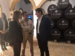 Acompañado por la candidata al Senado María Ponce y los candidatos de Cs a la Alcaldía de La Palma del Condado, Ignacio Ramírez, y de Bollullos Par del Condado, José Antonio Rodríguez, Hermoso ha visitado este martes la Bodegas Rubio de La Palma, "un referente en nuestra provincia de la apuesta por la calidad, de una empresa familiar que ha sabido consolidarse a lo largo del tiempo pero que, además, apuesta por la innovación, lanzando al mercado nuevos productos".