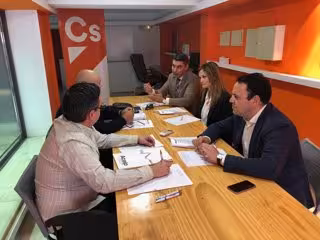 El cabeza de lista de Ciudadanos (Cs) al Congreso por Huelva, Carlos Hermoso, acompañado por María Ponce, cabeza de lista al Senado, y Andrés Aguilera, número cuatro en la lista al Congreso, han mantenido una reunión este martes con el delegado de Acaip en Huelva, Juan José Serrano, y Rubén Ríos, miembro de la sección sindical, a los que les ha trasladado "el compromiso de trabajar por el reconocimiento de estos funcionarios como agentes de la autoridad".
