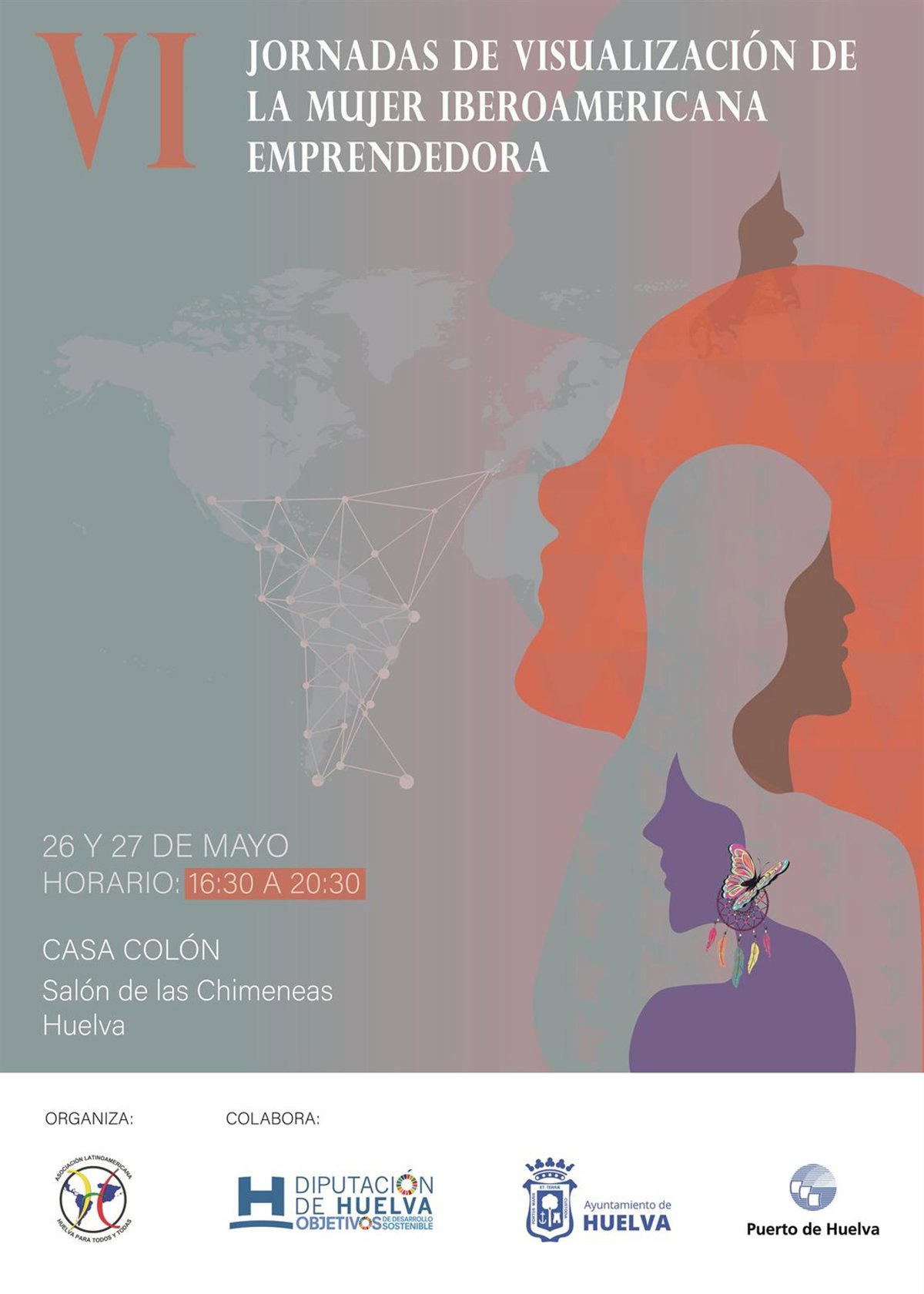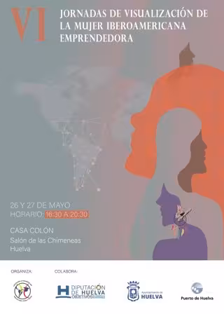 Cartel de las VI Jornadas de Visualización de la Mujer Iberoamericana Emprendedora. - ASOCIACIÓN LATINOAMERICANA HUELVA PARA TODOS