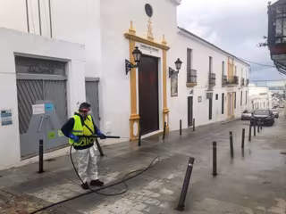 Un operario desinfecta las calles de Ayamonte (Huelva). - AYUNTAMIENTO DE AYAMONTE