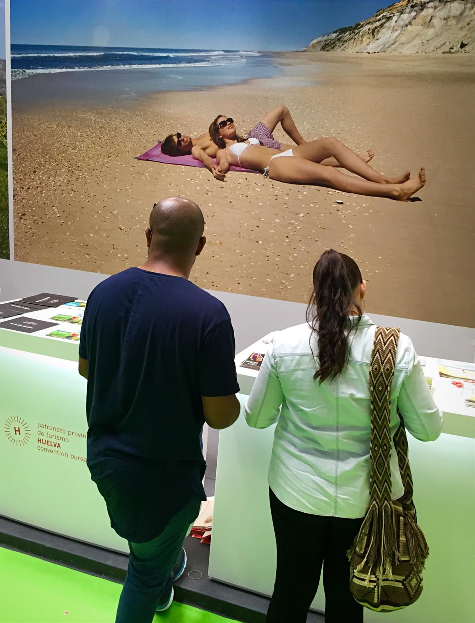 Con un stand en el que domina la imagen de una de las playas de Huelva, el Patronato de Turismo presenta al viajero del País Vasco un abanico de experiencias "difícil de rechazar". Desde la práctica del kitesurf en playas como Isla Canela, "famosa" por sus óptimas condiciones para iniciarse en este deporte de vela, a las rutas de senderismo por el ecosistema de las playas vírgenes de Doñana, o un recorrido por los viñedos y bodegas centenarias del Condado de Huelva "para deleitarse con sus vinos", maridados con "el mejor" Jabugo de la Sierra de Aracena y Picos de Aroche.