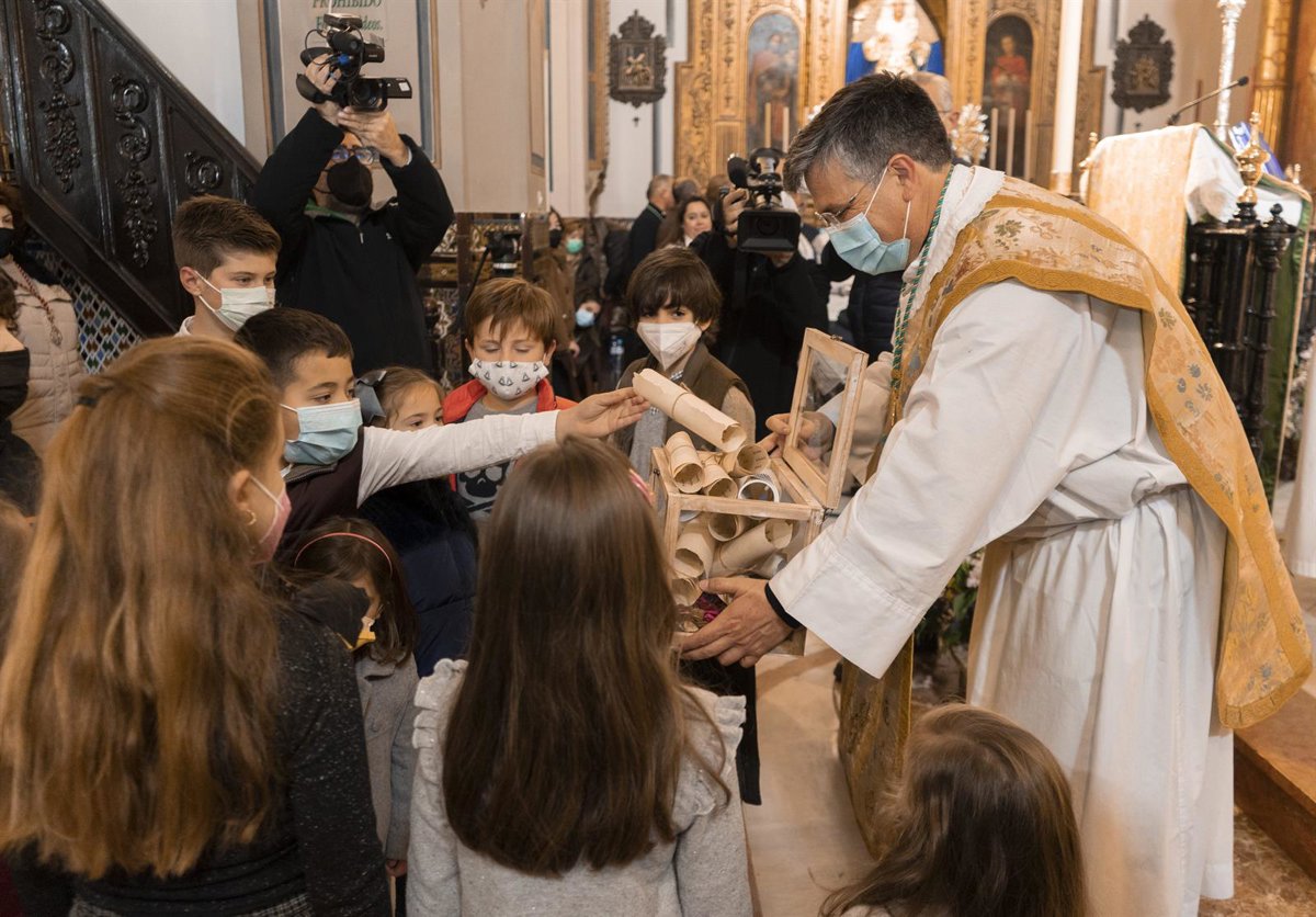 Así, los más pequeños del Grupo Joven de la Matriz fueron los encargados de llevar estos pergaminos hasta las plantas de la Virgen y