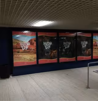 En total, han sido 32 soportes los que se han utilizado para proyectar diferentes imágenes de la oferta turística que presenta Huelva, distribuidos por toda la terminal de llegadas y recogida de equipajes del aeropuerto, así como en los accesos exteriores que comunican con el parking.