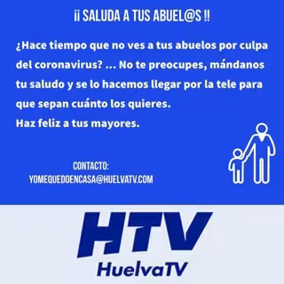 La televisión municipal Huelva TV ha puesto en marcha la iniciativa '¡Saluda a tus abuel@s!', con la que se pretende que los niños onubenses puedan comunicarse con sus abuelos a través de la televisión para mandarles mensajes de "ánimo y cariño" durante estas dos semanas de aislamiento en casa, debido a la crisis sanitaria ocasionada por el Covid-19 y con el fin de "hacer más llevadero" este periodo.