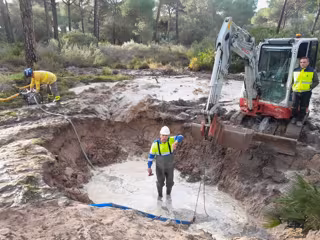 Trabajos de reparación de la tubería de abastecimiento de agua afectada por el temporal en Hinojos (Huelva). - PLAN INFOCA