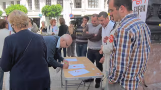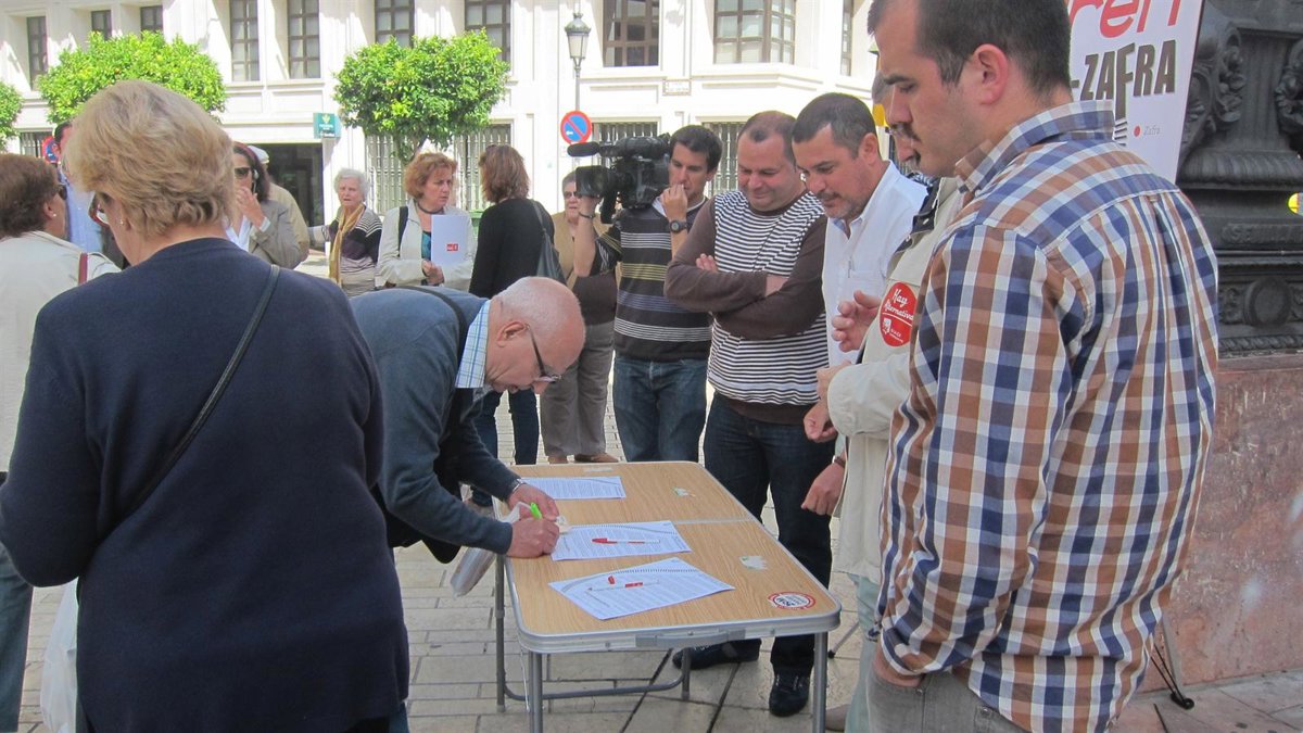 Representantes del PSOE e IULV-CA en Huelva, impulsores del manifiesto en defensa de la línea Huelva-Zafra, han llevado a cabo este lunes una recogida de firmas en plena calle Concepción en la capital, para solicitar al Gobierno central el mantenimiento de la línea ferroviaria. Por ello han convocado para el próximo día 7 de junio una concentración ciudadana en la puerta de la estación de Renfe y han anunciado que el próximo lunes van a realizar la compra de billetes para la línea Huelva-Jabugo, para reivindicar su continuidad.