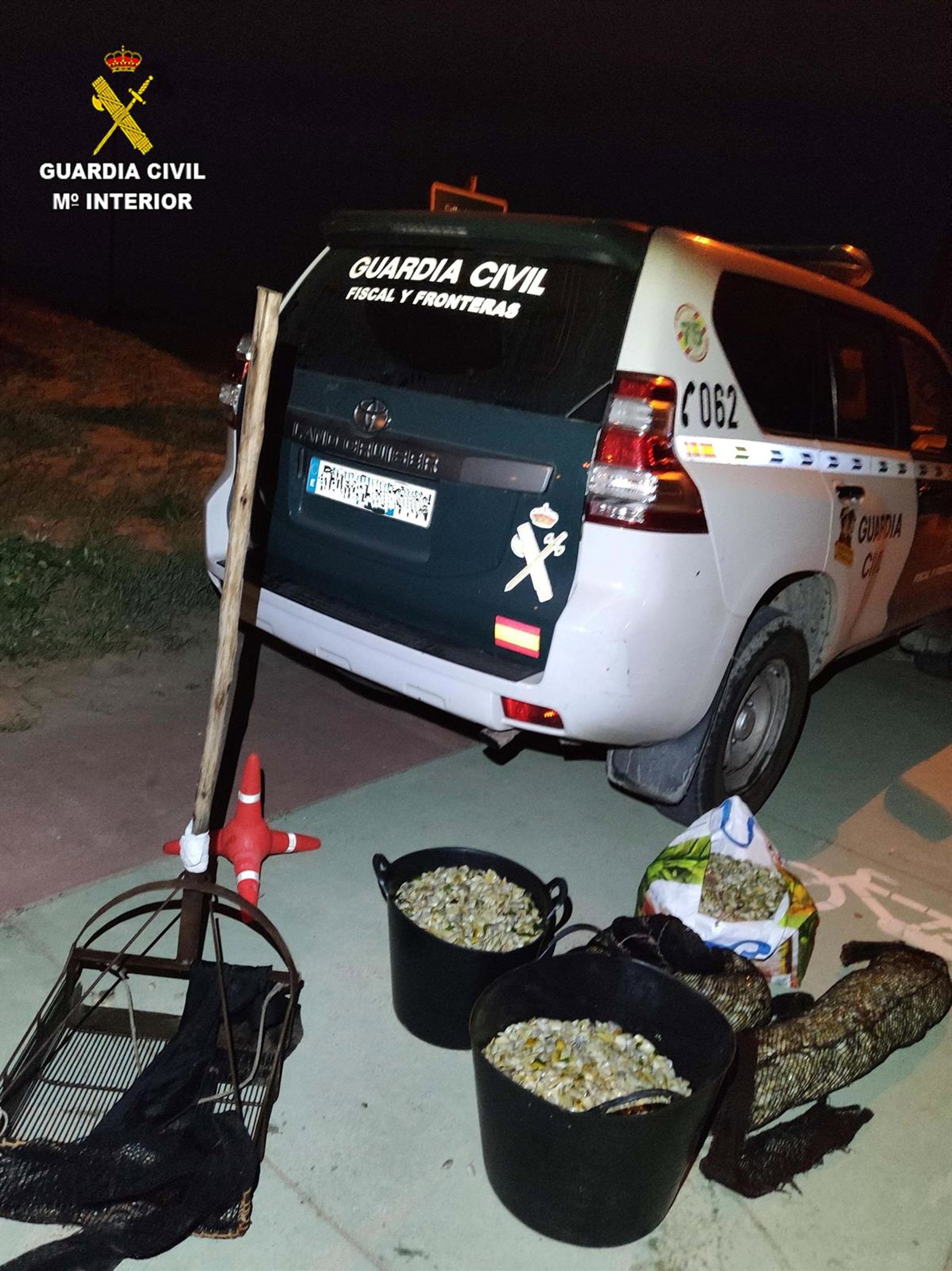 Según ha informado el Instituto Armado en una nota de prensa, los hechos ocurrieron la noche pasada, cuando una patrulla de vigilancia fiscal y de fronteras, realizaba sus labores por la costa del término municipal de Ayamonte. Durante su servicio los agentes encontraron a tres personas tras haber realizado labores de marisqueo de forma furtiva en horario nocturno y sin poseer licencia de mariscados.