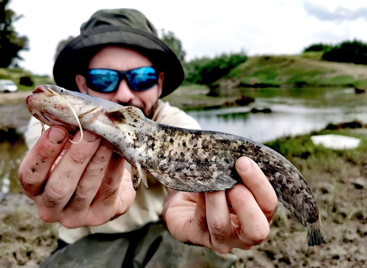 Uno de los invesigadores con un siluro. - ESTACIÓN BIOLÓGICA DE DOÑANA