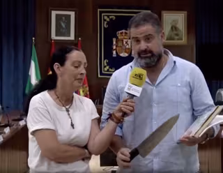 Izquierda Unida (IU) Cartaya (Huelva) ha pedido al alcalde del municipio, Manuel Barroso (PP), que "ponga fin de inmediato" a lo que consideran "una espiral de violencia verbal sin precedentes", después de que el regidor "mostrara este lunes en el pleno municipal un arma blanca de enormes dimensiones mientras vinculaba la inmigración con la inseguridad ciudadana".