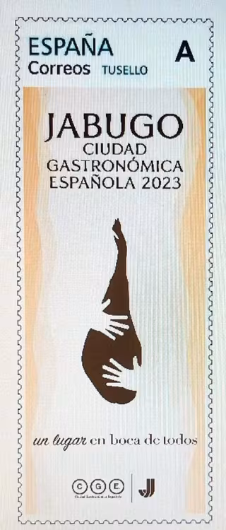 Correos ha emitido para el Ayuntamiento de Jabugo 1.000 tarjetas y 2.000 sobres prefranqueados, así como 510 unidades del producto Tu Sello Personalizado con motivo de la elección de la localidad como Ciudad Gastronómica 2023.