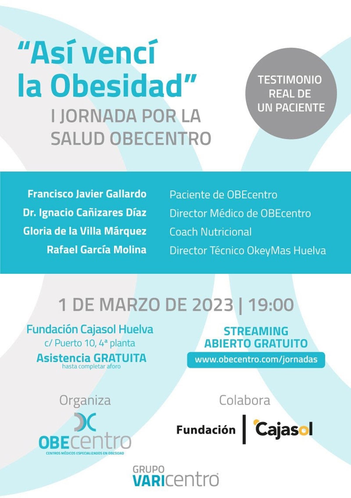 Según ha indicado la entidad en una nota de prensa, este miércoles, a partir e las 19,00 horas, se celebrará la I Jornada por la Salud, 'Así vencí la Obesidad', en la que el un paciente que ha conseguido un cambio radical en su estado de salud dará su testimonio. Se trata de una actividad organizada por OBEcentro en la que participarán el director médico de este centro, Ignacio Cañizares Díaz, la Coach nutricional Gloria de la Villa Márquez, y el preparador físico Rafael García Molina.