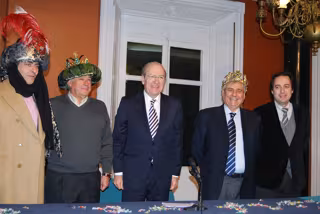 El alcalde de Huelva, Pedro Rodríguez, acompañado por el concejal de Cultura, Manuel Remesal, ha presentado este jueves en la Casa Colón a los Reyes Magos de la cabalgata de 2011, cuyas coronas han recaído en el presidente la Federación de Asociaciones de Vecinos Saltés, José Luis Rebollo; el presidente de la Federación Onubense de Fútbol, Félix Pérez; y en el banderillero onubense Jesús Carvajal.