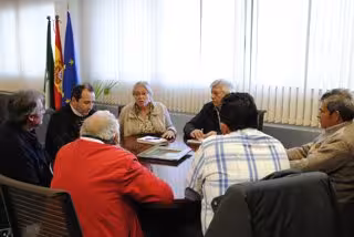 En el encuentro han participado la delegada territorial, Carmen Lloret; el alcalde de Almonte, José Antonio Domínguez; una representación de piñeros de la comarca de Doñana y el coordinador provincial de la Agencia de Medio Ambiente y Agua, Pedro Silverio.