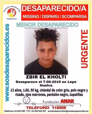 No obstante, ha precisado que están alertadas todas las autoridades para dar con el paradero del menor. De hecho, la Policía lepera ha difundido una fotografía del niño, que responde al nombre de Zbir El Kholti y que desapareció cuando vestía un chándal de color gris, pantalón negro y zapatillas. El menor mide 1,6 metros y pesa unos 50 kilos, tiene el pelo negro y rizado y los ojos marrones.