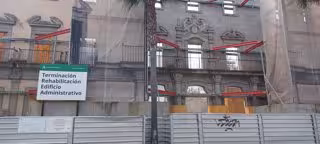 Imagen del antiguo edificio de Hacienda en el centro de Huelva con las obras paralizadas. - R.D/EUROPA PRESS