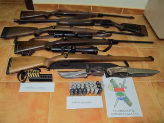 Posteriormente otro individuo al ver llegar a la Guardia Civil se introdujo a la carrera en un inmueble de la finca mientras portaba un arma larga en las manos, negándose a mostrar la misma cuando fue requerido para ello. Aunque posteriormente y tras comunicar con el propietario de la finca, este dio autorización de acceso y se comprobó que dentro había otros dos rifles y abundante munición.