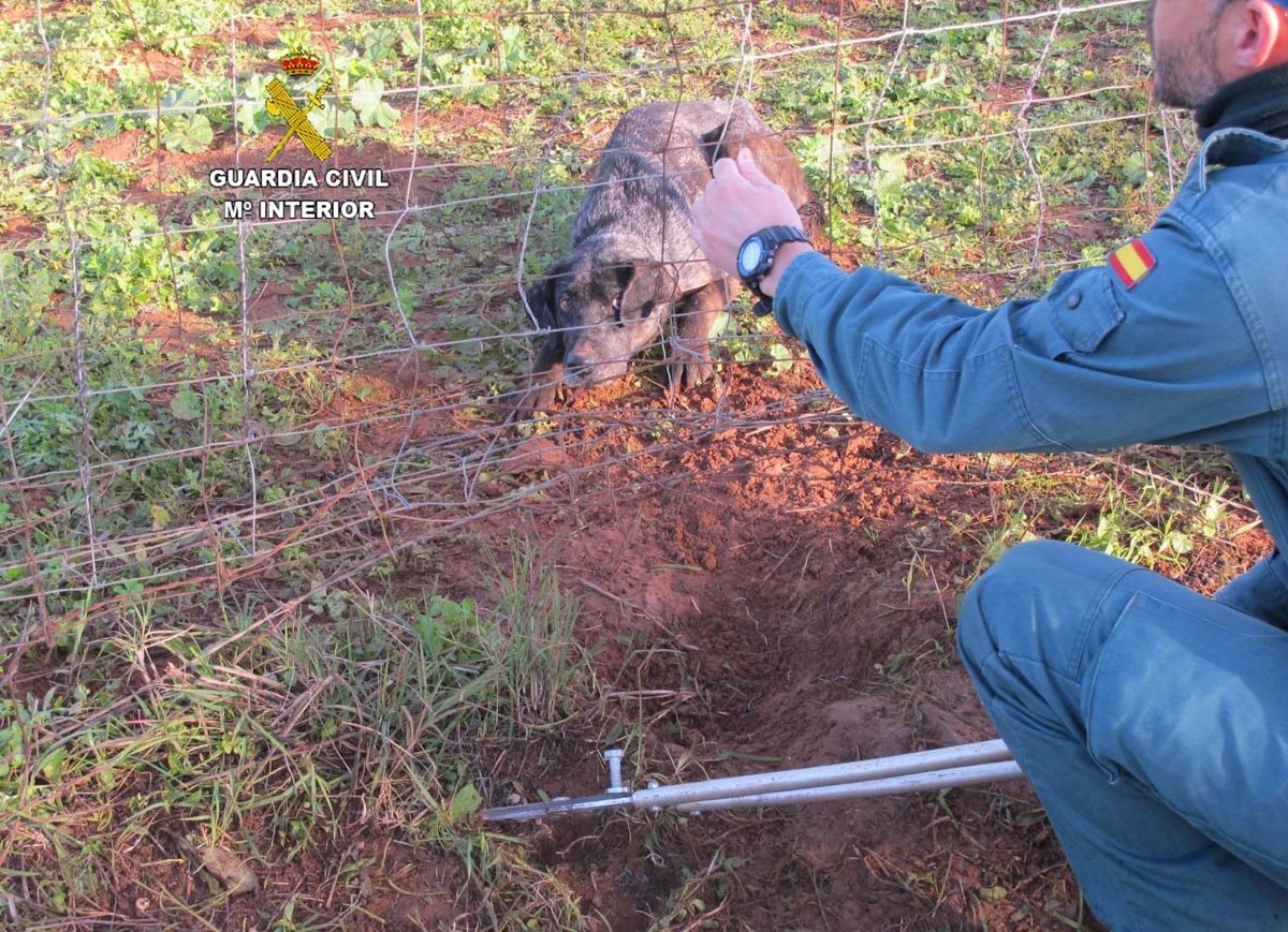 La Guardia Civil ha liberado a una perra atrapada por un lazo de caza en una finca de Niebla (Huelva), tras la alerta recibida el 21 de diciembre sobre las 10,00 horas por parte de un ciudadano que llamó al 062 para informar de que había visto al animal atrapado junto a una valla.