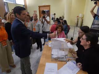 El candidato a la Alcaldía de Huelva de Ciudadanos (Cs), Guillermo García de Longoria, ejerciendo su derecho al voto. - CIUDADANOS HUELVA