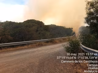 Más de 20 bomberos y un helicóptero actúan en un incendio declarado en Cartaya - INFOCA