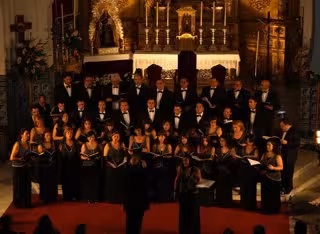 Por su parte, la Coral Polifónica Padre J. Mirabent, dirigida por Aurelio Jara y Aurelio Jara Biedma, ofreció un concierto en el que sorprendieron con la mezcla de ritmos y temas que fueron desde 'El Dios de la Vida' de Haendel o 'El Señor del Universo' de Albinoni, hasta el 'Mediterráneo' de Joan Manuel Serrat, 'Te he de querer mientras viva' de León y Quiroga, una Plegaria Rociera de A. Jara, Fandangos de Huelva o el Ave María Guaraní de Ennio Morricone.