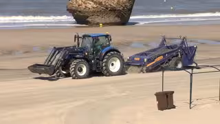 Una máquina trabaja en el cribado de la arena en el primer día de apertura al baño de la playa de Matalascañas (Huelva) - EUROPA PRESS
