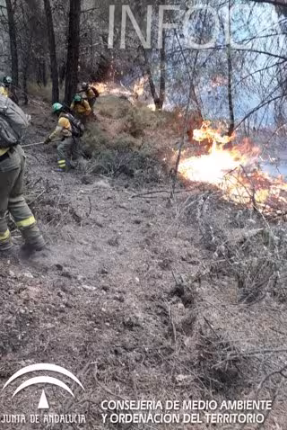 Efectivos del Plan Infoca han seguido trabajando a lo largo de toda la madrugada "con maquinaria pesada", pero como consecuencia de la "inversión térmica" que sufre los alrededores del incendio los medios aéreos no han podido incorporase hasta las 8,15 horas, momento en el que lo han hecho "de forma escalonada y por sectores".