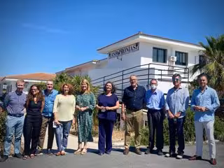 La candidata del PP a la Alcaldía de Huelva, Pilar Miranda, junto a otros miembros de la candidatura, ha mantenido un encuentro con la junta directiva de Aspapronias, encabezada por la presidenta de la entidad, Cristina Andreu, para trasladarles sus propuestas en materia social y tenderles la mano para una colaboración futura.