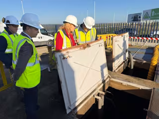 La alcaldesa de Huelva, Pilar Miranda, y el presidente de la Empresa Municipal de Aguas de Huelva, Felipe Arias, han supervisado este martes los trabajos de limpieza preventiva en el sistema de alcantarillado de la capital, ante los nuevos episodios de lluvias que anuncian las previsiones meteorológicas para final de esta semana.