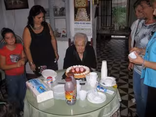 Ángela es una mujer muy conocida y querida en su barrio, a la que pese a no haber contraído matrimonio y no haber tenido descendencia, no le ha faltado el cariño de sus sobrinos, que han querido celebrar tan "importante" efeméride con una fiesta de cumpleaños en la que no ha faltado la tradicional tarta y la alegría compartida entre familiares, amigos y vecinos.