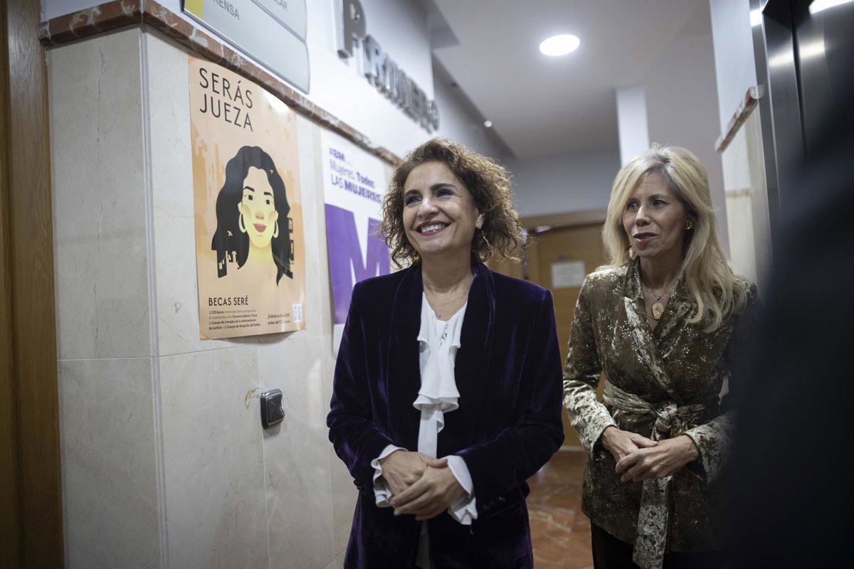 La vicepresidenta y ministra de Hacienda, María Jesús Montero, este viernes en Huelva junto a la subdelegada del Gobierno en la provincia, María José Rico. - CLARA CARRASCO/EUROPA PRESS