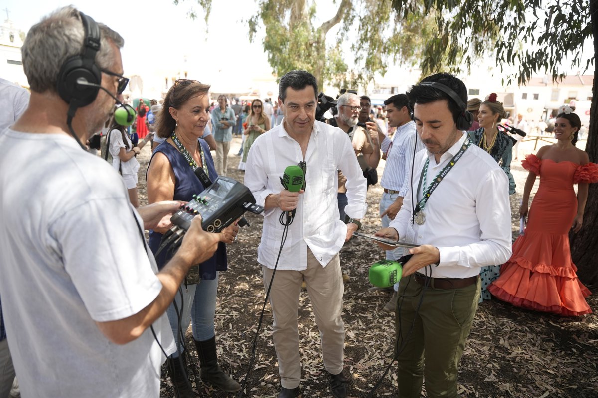 El presidente de la Junta de Andalucía, Juanma Moreno, ofrece unas declaraciones a los medios de comunicación en la aldeda de El Rocío, a 7 de junio de 2025 en Almonte (Huelva, Andalucía, España). - Joaquin Corchero - Europa Press