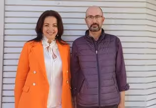 La coordinadora de Cs en Huelva y delegada territorial de Turismo, María Ángeles Muriel, junto al representante de Cs en Bonares, Juan Bautista Bot. - CIUDADANOS HUELVA