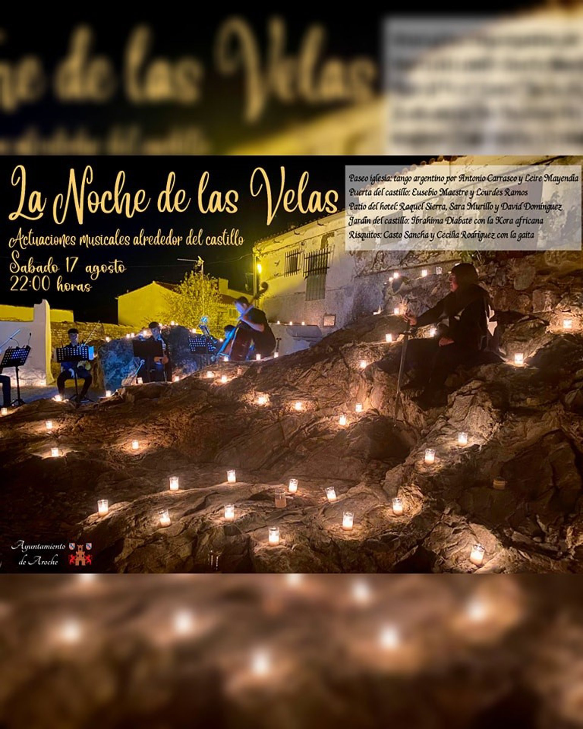 La Noche de las Velas es un evento ya consolidado que año tras año suma nuevas propuestas culturales y que enamora a todos los públicos por la singular belleza del patrimonio arocheno que resplandece con la mágica luz de las velas.
