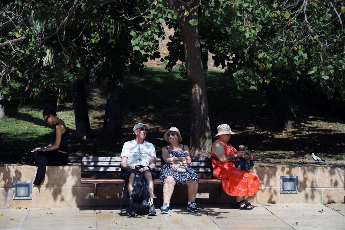 Varias personas se protegen del sol en una calle de Málaga. A 27 de junio de 2025, en Málaga (Andalucía, España). - Álex Zea - Europa Press