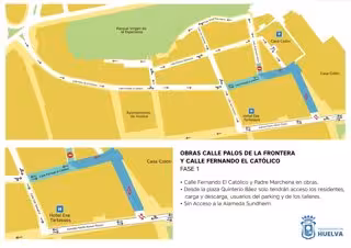 La fase 2 proseguirá por el siguiente tramo de Fernando el Católico --hasta alcanzar el cruce con Cardenal Cisneros-- y por la calle San Salvador. En la fase 3 se intervendrá en la calle Palos y en el tramo de Fernando el Católico coincidente con las traseras del Ayuntamiento. Finalmente, en la fase 4 se ejecutará la reurbanización de la confluencia entre la zona de unión entre la calle Palos y La Palmera. Asimismo, se reubicarán las reservas especiales para ambulancias, Hotel Tartessos, motos y zonas de carga y descarga.