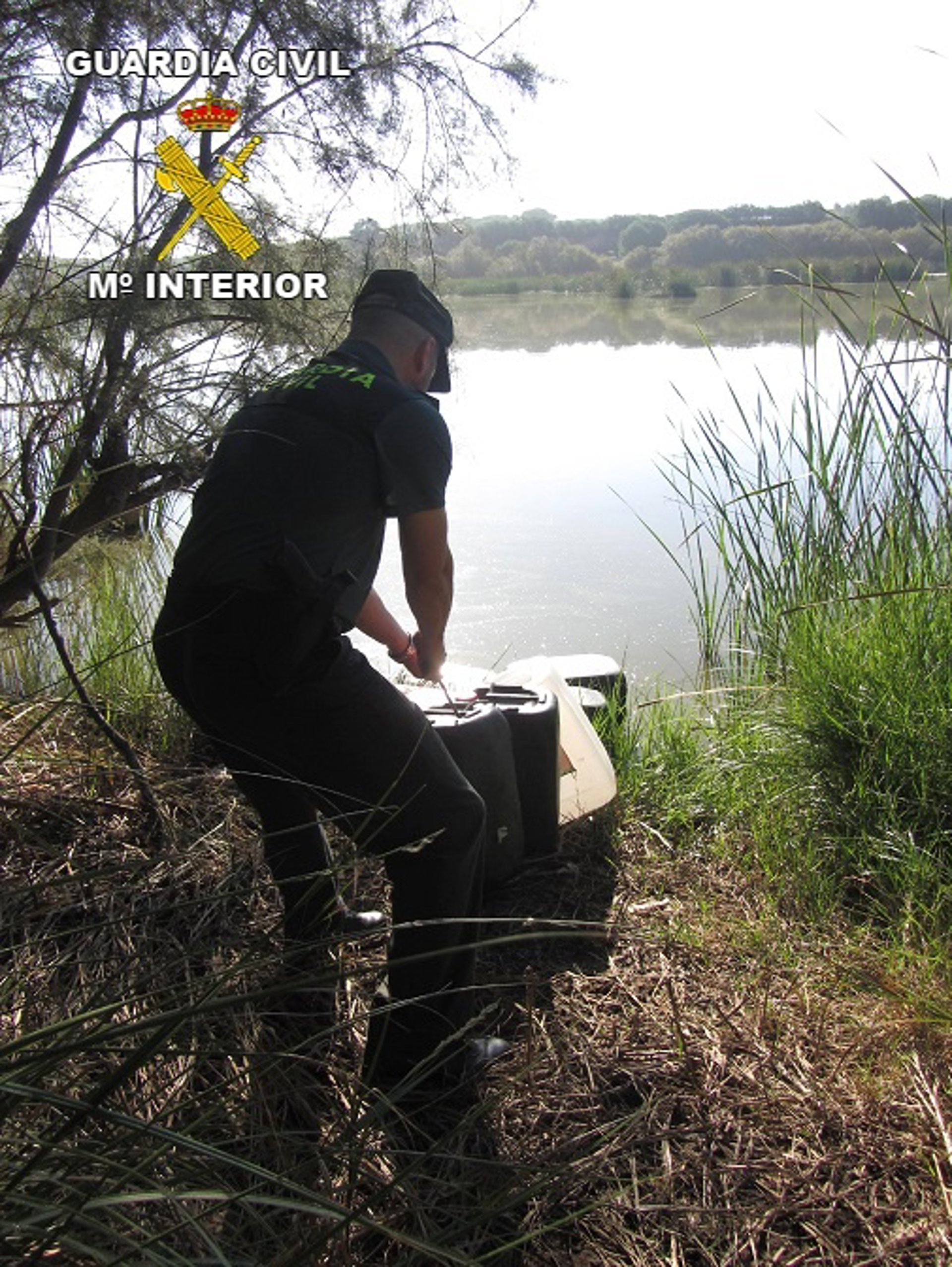 Con estos seguimientos, se descubrió que en una zona próxima al Estero Domingo Rubio, se procedía a trasvasar el combustible sustraído a unas garrafas, que posteriormente sumergían en el agua hasta ser vendidas. Con posterioridad se realizaron dos registros domiciliarios en sendas viviendas de Palos de la Frontera, donde han sido recuperados material electrónico, herramientas y otros objetos procedentes de los robos cometidos.