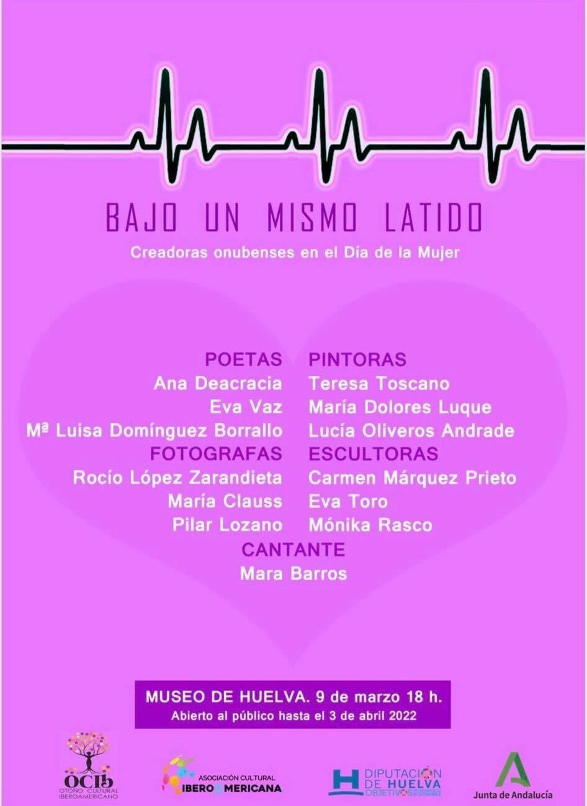 El Otoño Cultural Iberoamericano (OCIb) de Huelva ha organizado para este miércoles el acto 'Bajo un mismo latido', con motivo de la celebración del 8M con la que se quiere visualizar el papel de la mujer en diversas manifestaciones de la cultura como la poesía, la pintura, la escultura, la fotografía y la música.