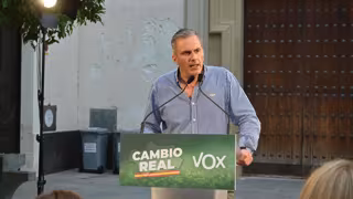 Javier Ortega Smith, secretario general de Vox, en un mitin del partido en Cádiz durante la campaña del 19J - VOX