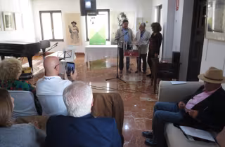 Por la tarde se procede a la presentación de los libros de José María Cotarelo y que lleva por título 'La nieve y las campanas' y 'Surcos de América' de Jaime de Vicente, un recopilatorio de artículos publicados en prensa sobre Iberoamérica y por último Ramón Llanes, presidente de Poetas por la Paz leerá su cuento y poemas recientemente premiados. Cierra el acto la actuación de quinteto de guitarra onubense Grupo Ensemble.