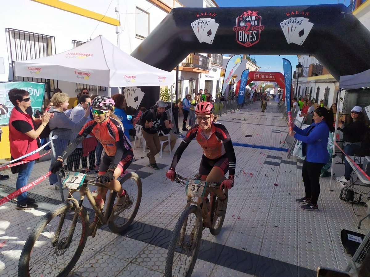 La pareja formada por los hermanos bartolinos José Carlos y Francisco Javier Macías en la general masculina y la formada por Irina Coelho y Natalia Mendes en la femenina han sido los vencedores del IV Desafío Andévalo 2 Bikes que se ha celebrado este fin de semana en San Bartolomé de la Torre (Huelva).