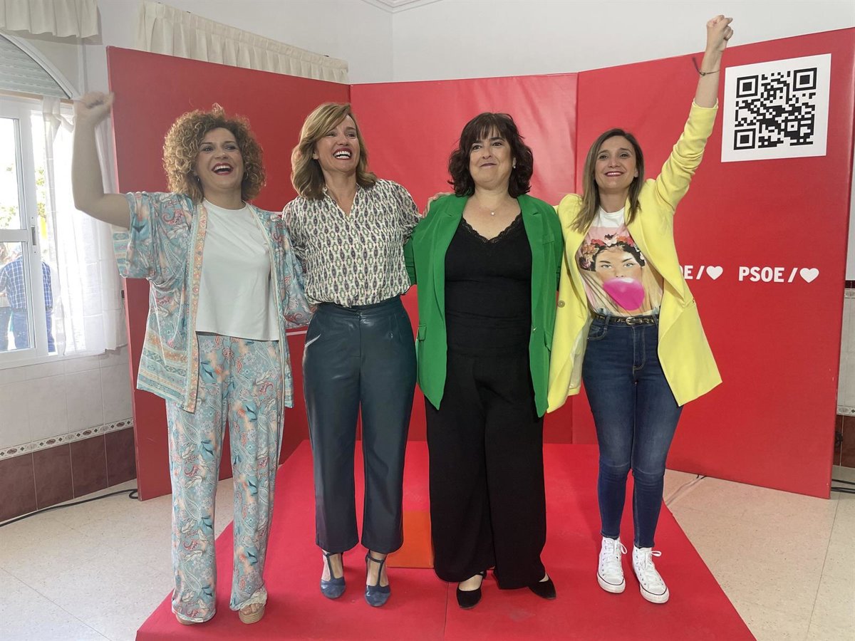 La ministra de Educación y Formación Profesional, Pilar Alegría, junto a la candidata a la Alcaldía de Aljaraque, Yolanda Rubio, a la secretaia general del PSOE de Huelva, María Eugenia Limón y a la parlamentaria andaluza María Márquez. - PSOE DE HUELVA