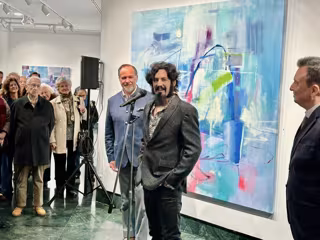 El presidente de Caja Rural del Sur y su Fundación, José Luis García-Palacios Álvarez, participó en el acto de inauguración de la muestra y destacó que esta nueva etapa ya "se vislumbraba, se dejaba entrever, en la exposición del año 2023" en la misma sala.