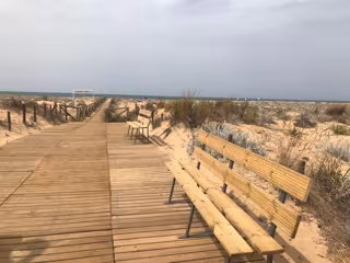 Asimismo, se han adquirido una serie bastones para ayudar a estas personas en sus movimientos por la arena; y se ha instalado una rampa fija en la pasarela 1, así como una zona de descanso y bancos en esta misma pasarela para facilitar la vuelta.