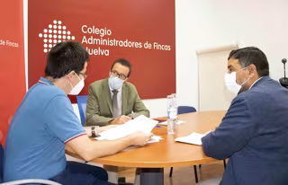 El presidente del PP de Huelva y parlamentario andaluz, Manuel Andrés González, junto con el senador y secretario general del partido en la provincia, José Enrique Sánchez, han mantenido una reunión con el presidente del Colegio Oficial de Administradores de Fincas (COAF), Alejandro Chamorro, donde se ha abordado las necesidades del colectivo que pasan por la reforma integral de la actual Ley de Propiedad Horizontal que data de 1960.