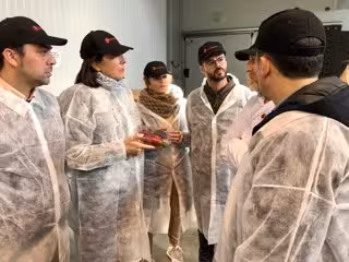 La secretaria general del PP-A, Loles López, visitando la planta de Perlahuelva Exportaciones Hortofrutículas de Rociana del Condado (Huelva) - PP-A