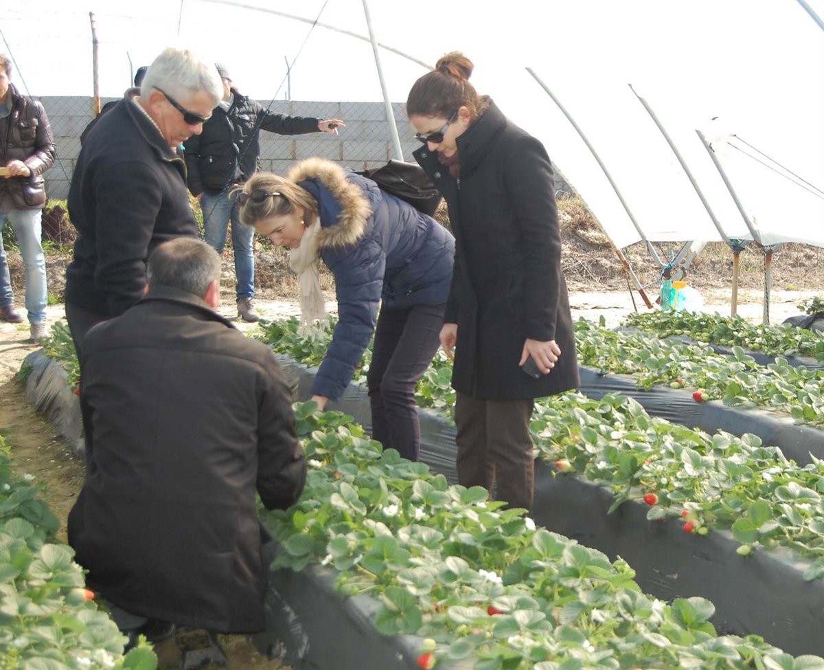 El grupo de contacto hispano-francés-italiano también ha realizado una visita técnica a una plantación de fresas de la provincia, en la que han podido comprobar la evolución de las diferentes variedades, así como las técnicas de producción y de control biológico de plagas que se practican en los campos onubenses.