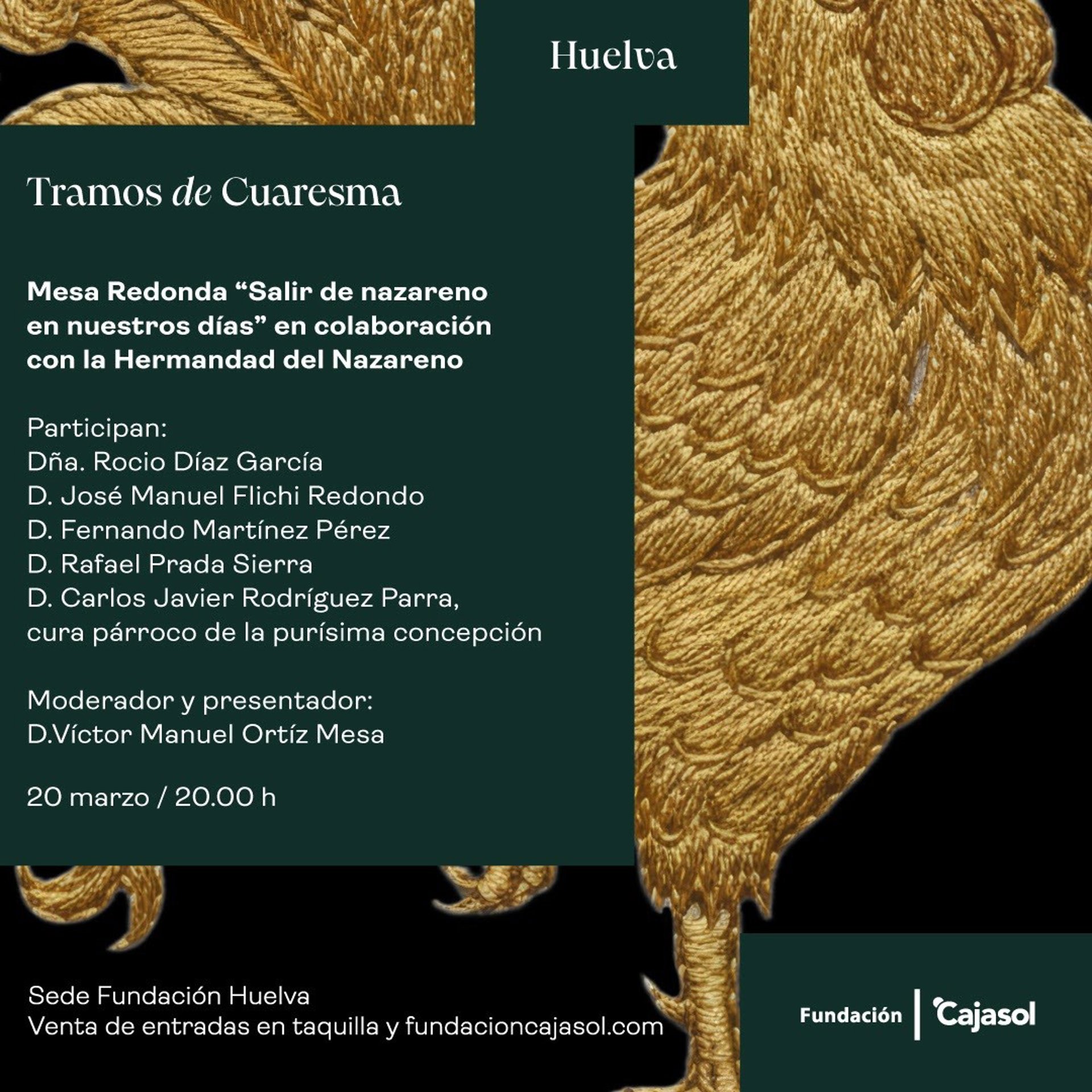 Cartel de la mesa redonda 'Salir de nazareno en nuestros días' de la Fundación Cajasol en Huelva. - FUNDACIÓN CAJASOL