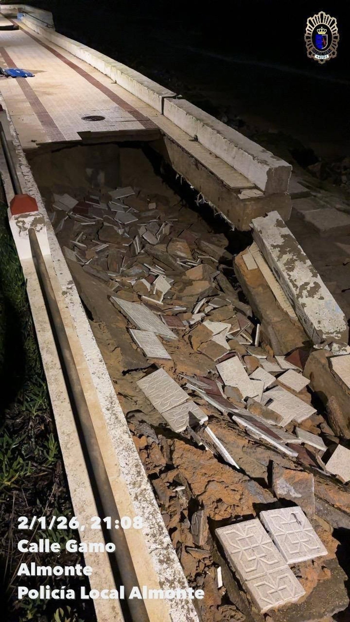 Daños en el paseo marítimo de Matalascañas en Almonte (Huelva). - POLICÍA LOCAL DE ALMONTE